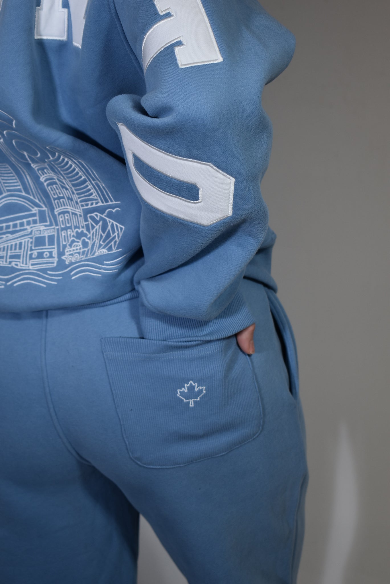 These wide-leg sweatpants blend comfort with subtle Canadian-inspired detailing. Designed in a soft, premium fleece, they feature a stretchy, flexible waistband for an easy, relaxed fit. The back pocket is crafted from ribbed fabric to add a touch of texture, finished with a clean embroidered maple leaf for a signature look. Perfect for everyday wear, lounging, or styling as part of your full matching set.